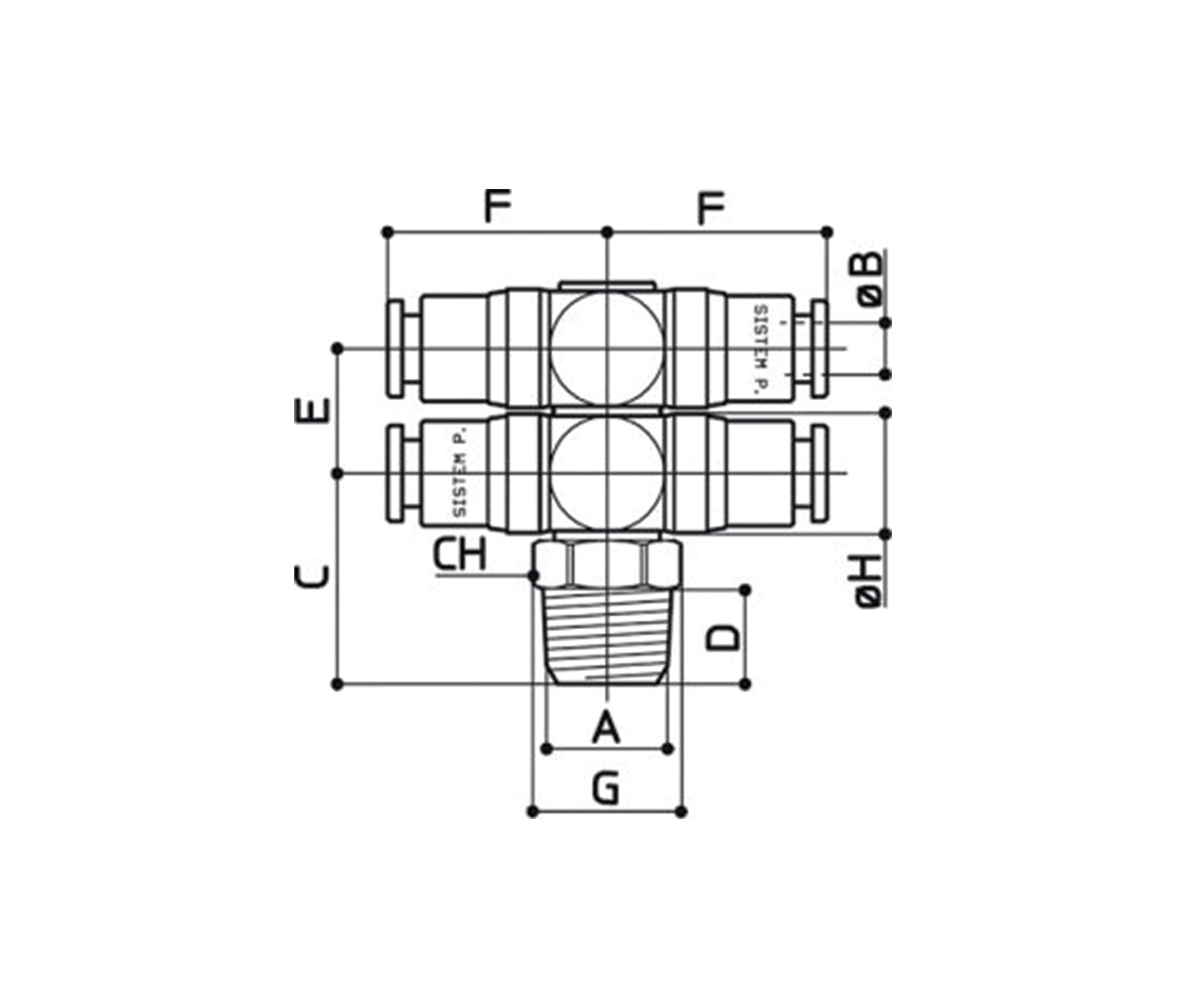 / 11Conexão em T central giratória dupla rosca macho BSPT
