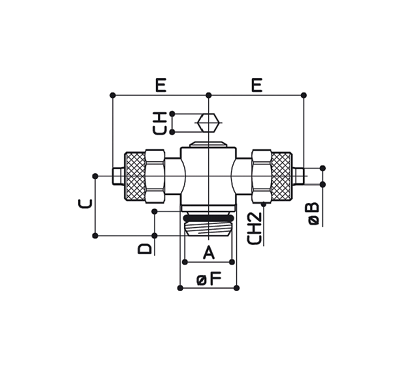 Conexão em T central giratório rosca macho cilíndrica – Chave allen