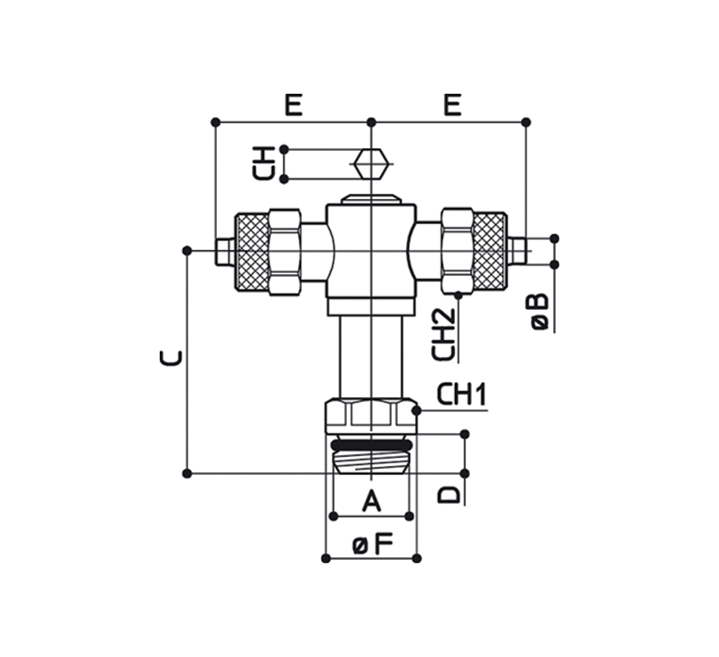 Conexão em T central fixo rosca macho cônica