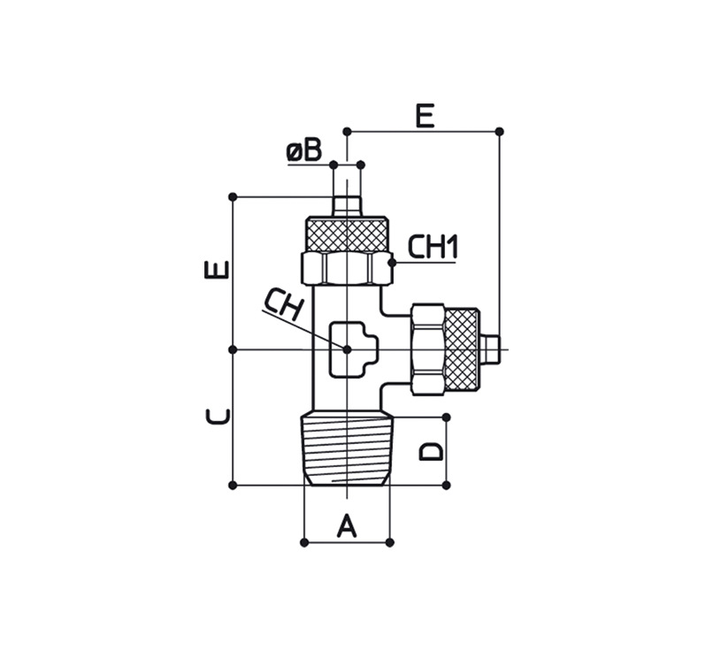 Conexão em T lateral fixo rosca macho cônica