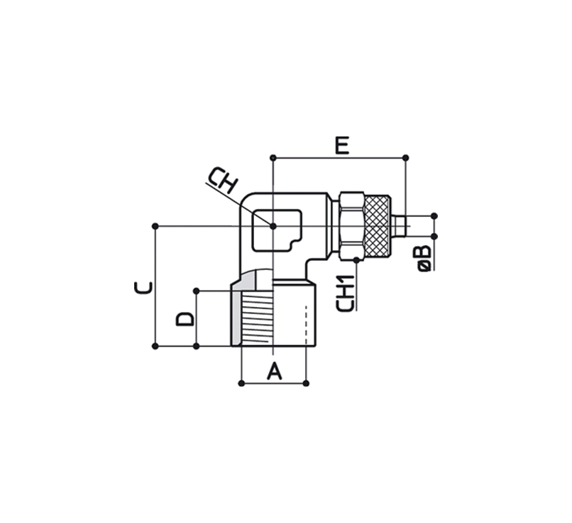 Conexão em L giratório rosca macho cilíndrica – Chave allen