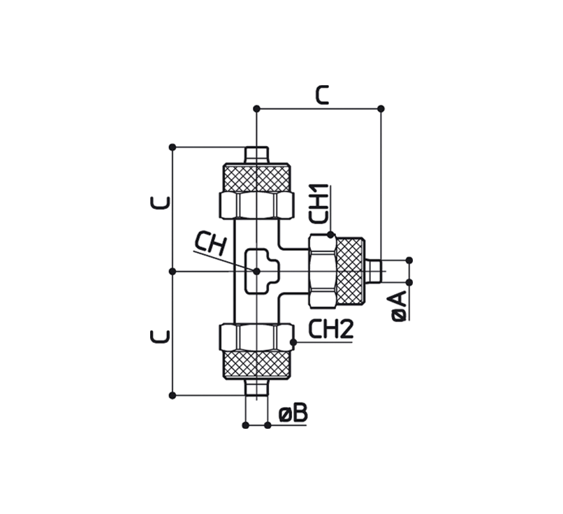 Conexão em T central fixo rosca macho cônica