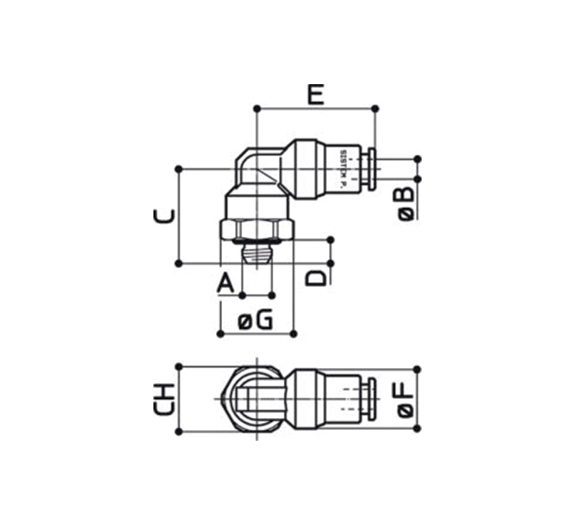 Conexão em L giratória rosca macho Métrica