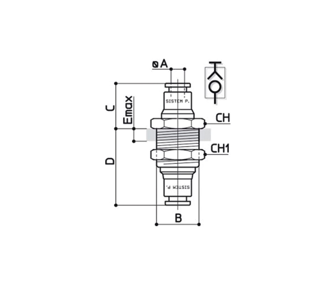 Conexão em T lateral giratória rosca macho Métrica