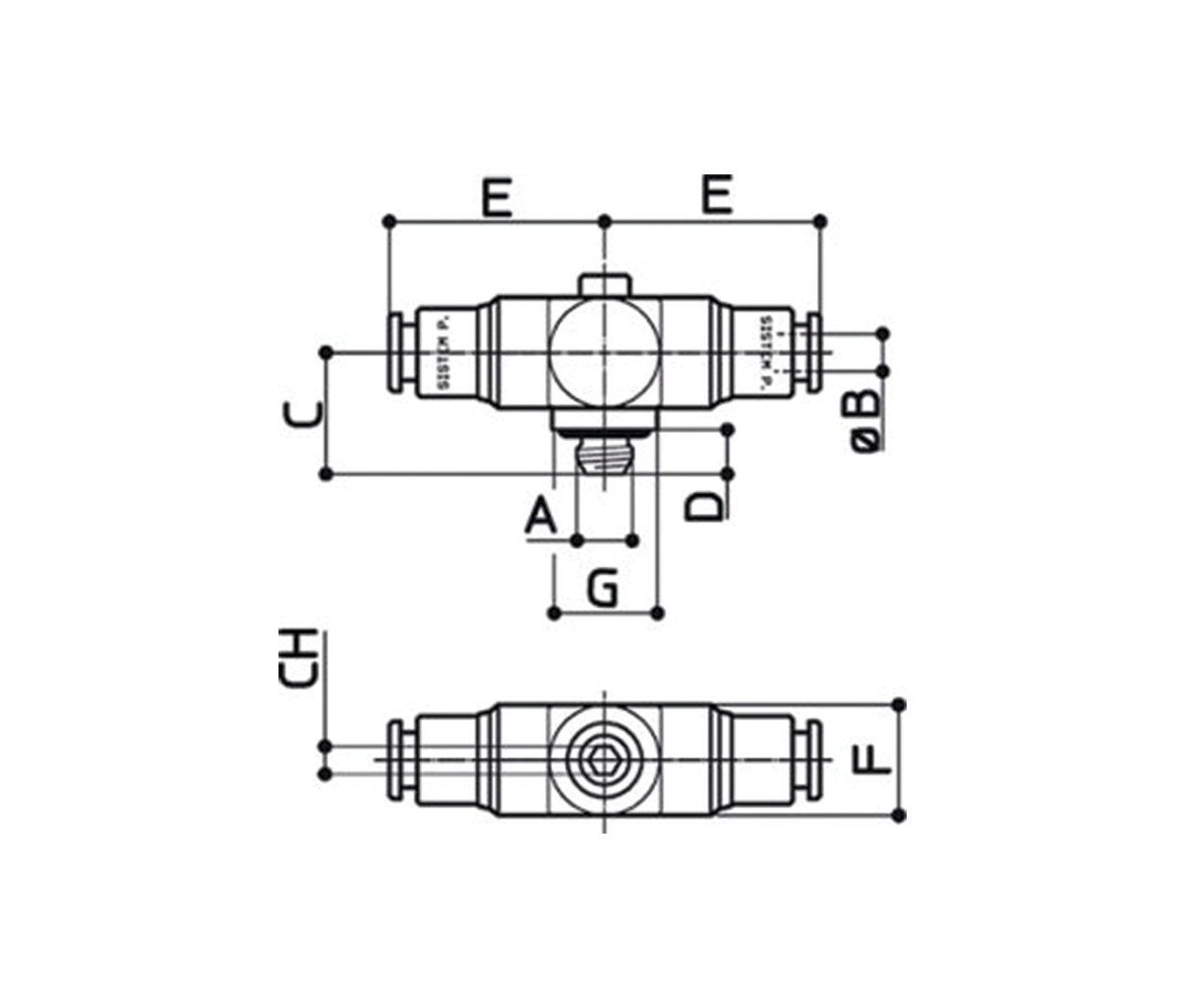 / 40Conexão em T central giratória reduzida rosca macho Métrica – Chave Allen
