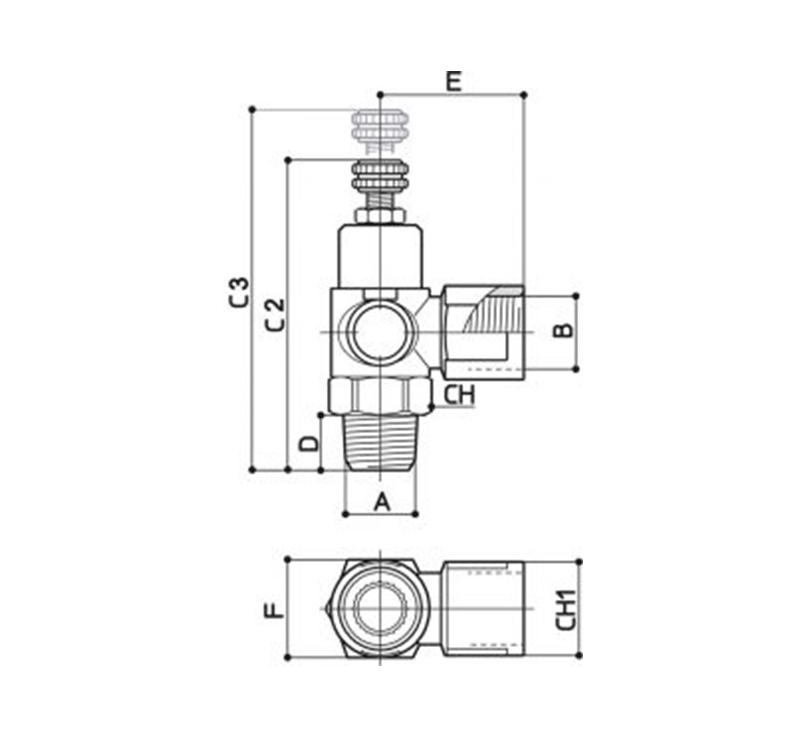 Reguladora de velocidade rosca macho BSPT – Fêmea BSP com manipulo