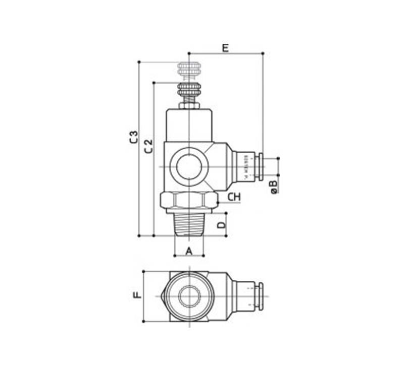 Reguladora de velocidade rosca macho BSPT – Tubo com manipulo