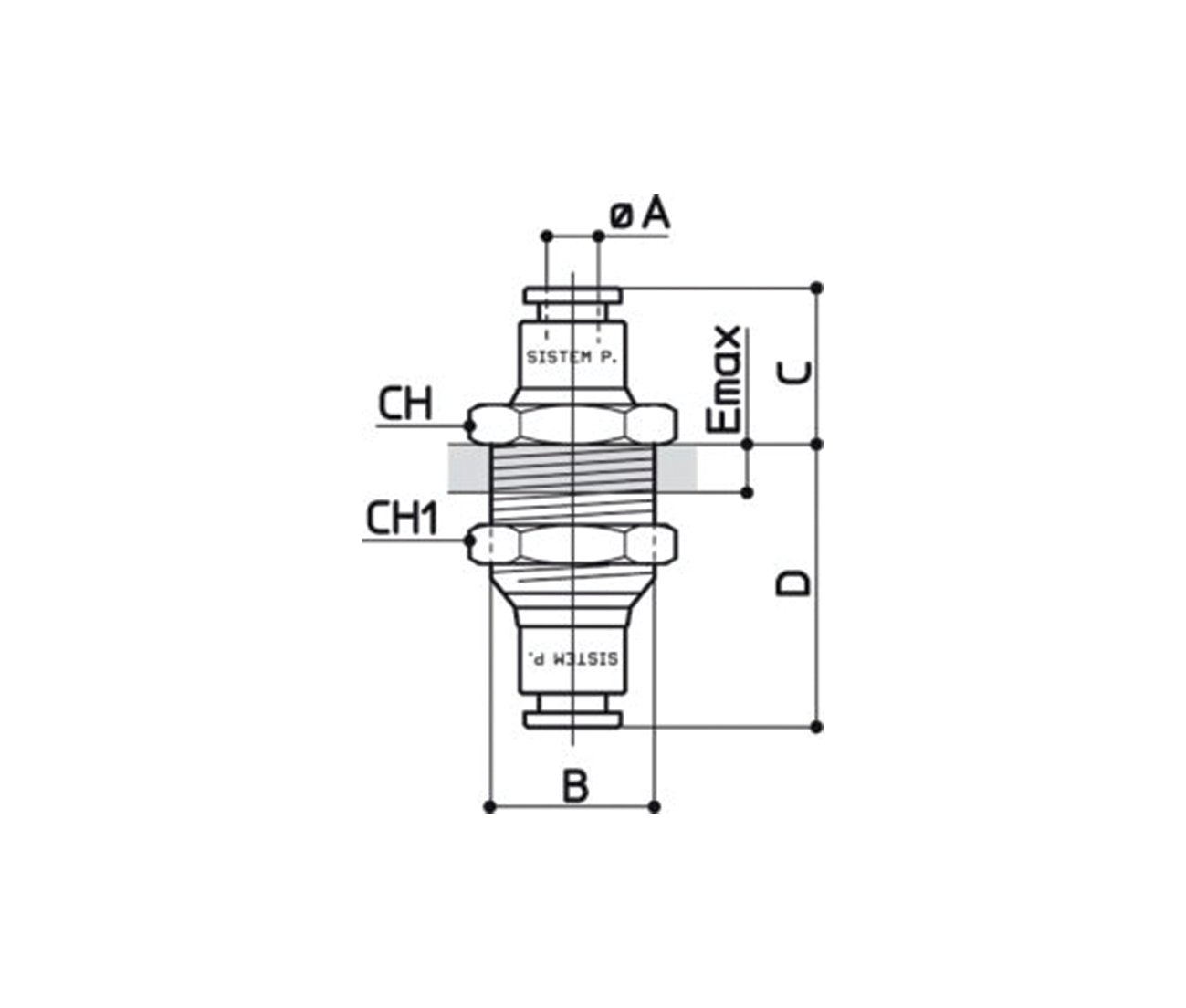 / 81União reta tubo – Fêmea BSP para painel