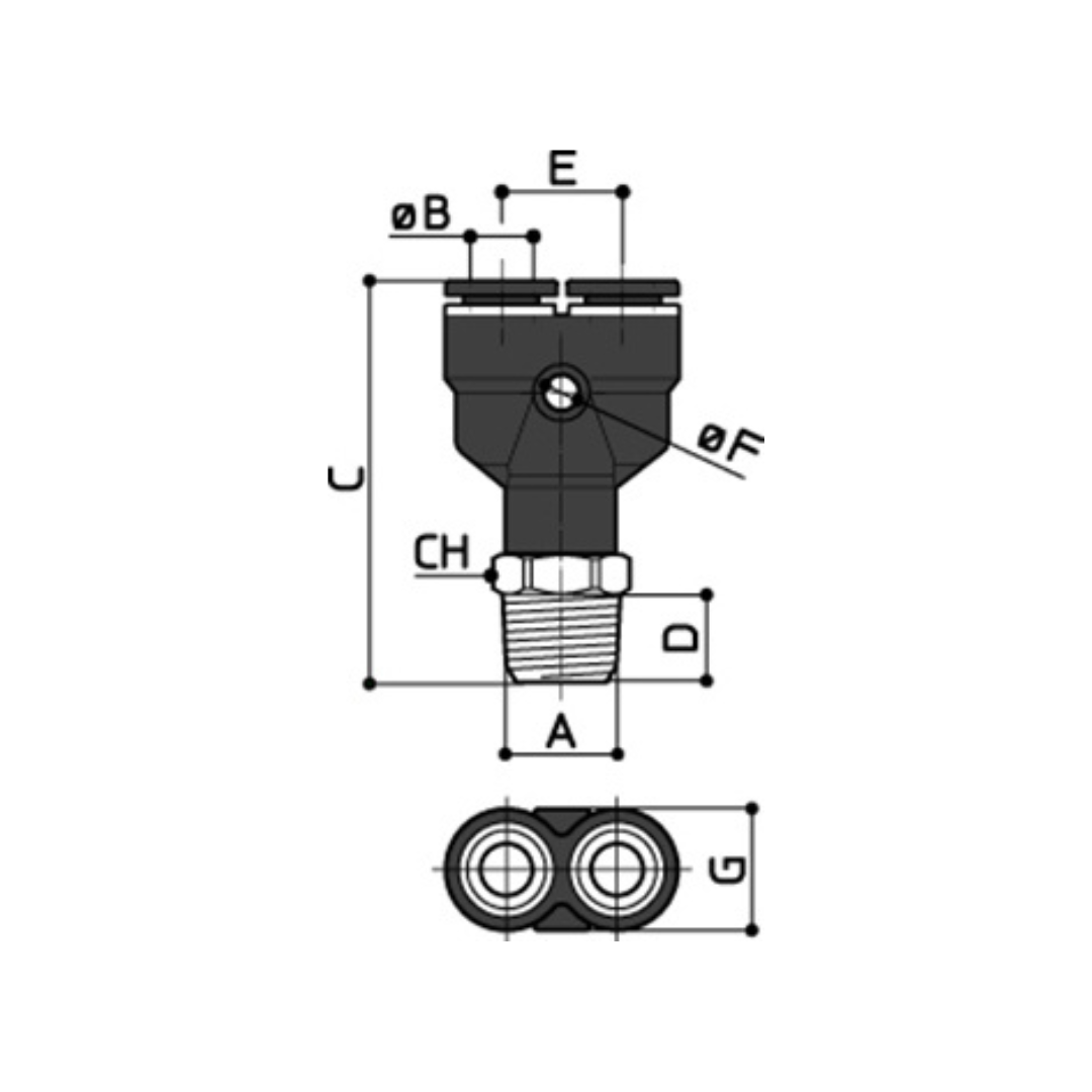 / K34Conexão em Y giratória rosca macho BSPT