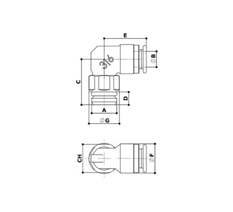 Conexão em L giratório rosca macho BSP – Métrica