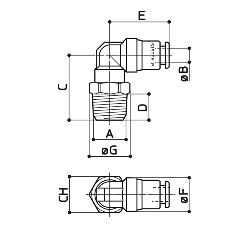 Conexão em L giratória rosca macho BSP – Chave Allen