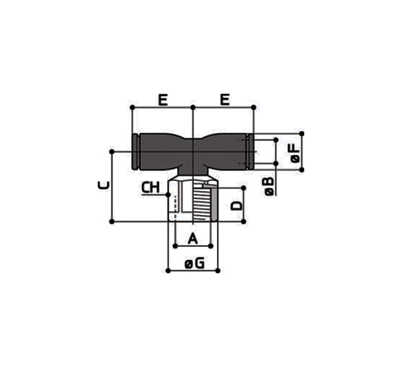 Conexão em T central giratória rosca fêmea BSP
