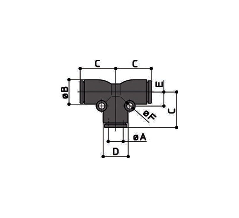 Conexão em T lateral giratória rosca macho Métrica
