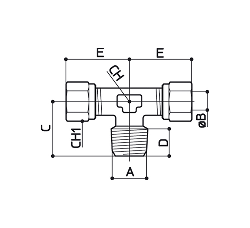 / GV11Conexão em T central fixo rosca macho cônica