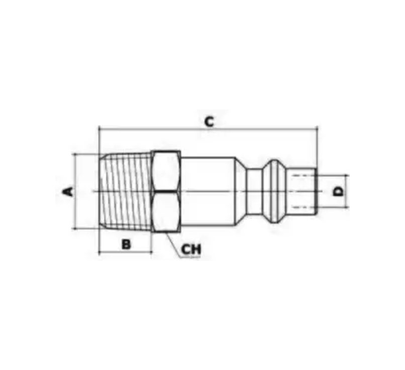 / I0TBPino rosca macho BSPT perfil ISO B