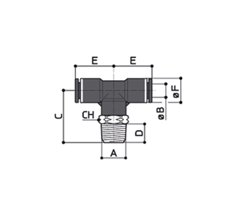 / K40Conexão em T central giratória rosca macho NPT