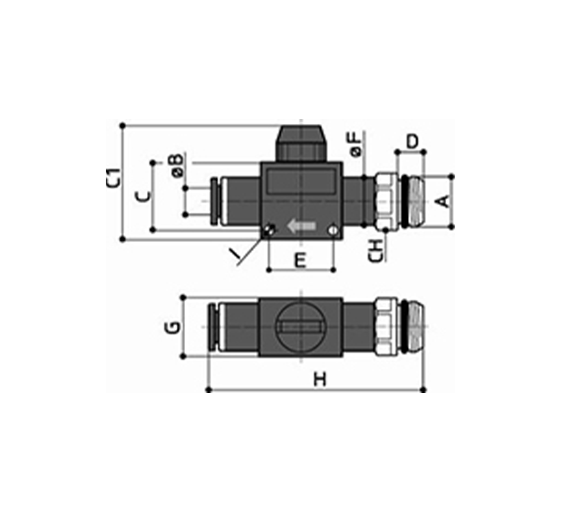 Válvula de fechamento 3/2 vias rosca macho BSP + oring – tubo