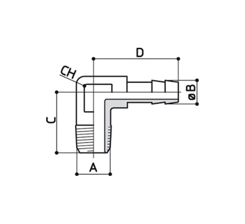/ S31Adaptador em L rosca macho BSPT com espiga