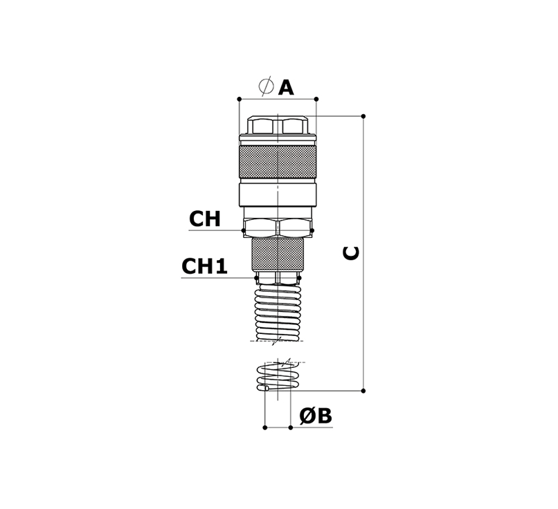 Engate rápido Mignon com pino e porca para painel – tubo com mola