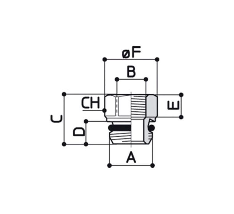 Redução rosca macho BSP + oring para rosca fêmea BSP